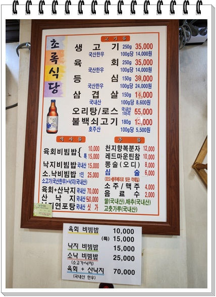 - 육회 + 산낙지 : 70,000원